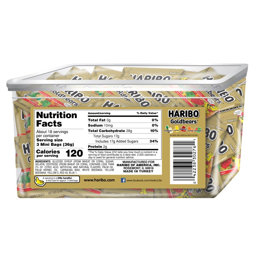 HARIBO Goldbears Gummi Candy 22.8 oz Tub 54 Packs Assorted Flavors Snack Bonbon